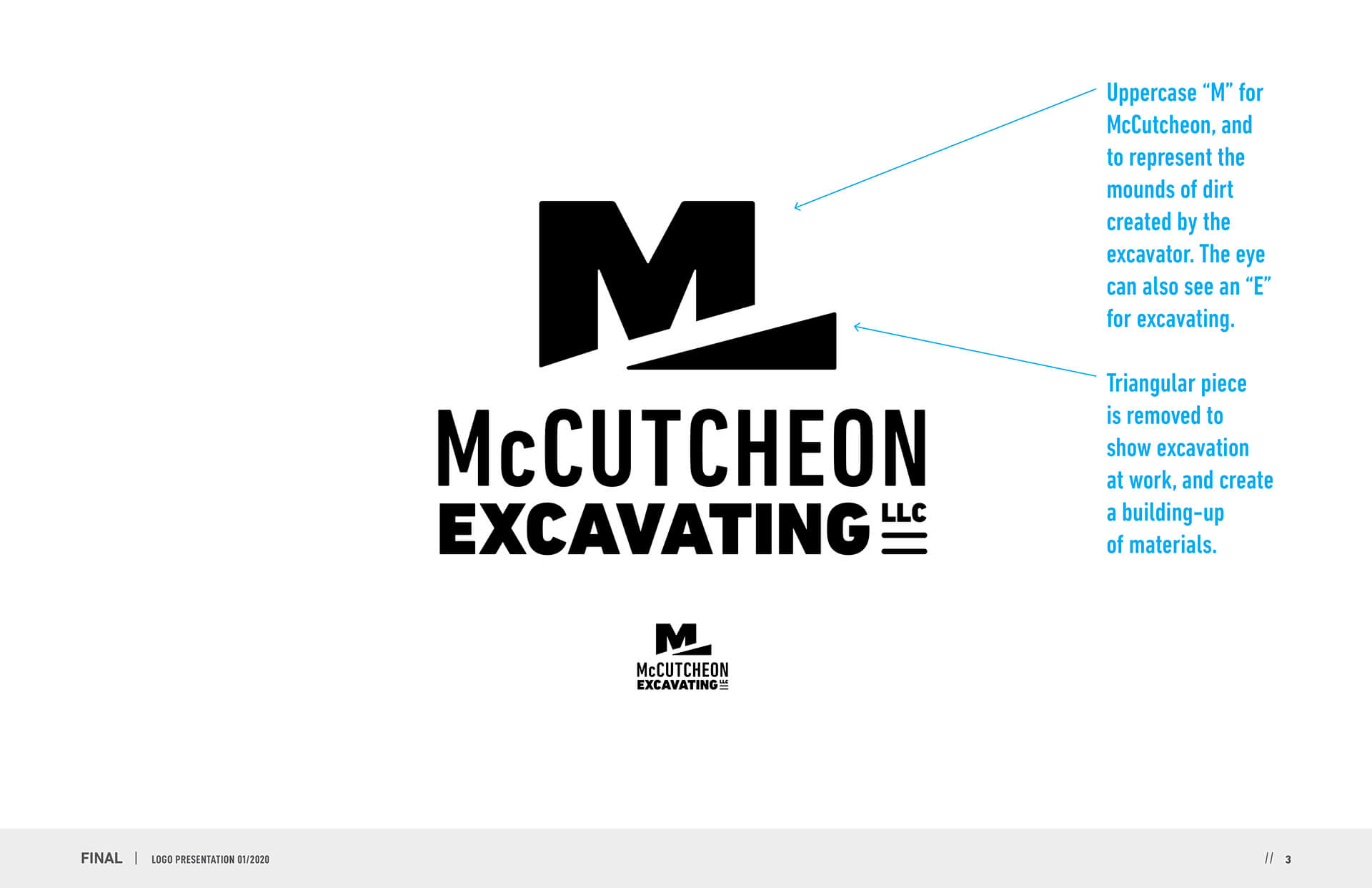 • Uppercase “M” for McCutcheon and to represent the mounds of dirt created by the excavation machine.